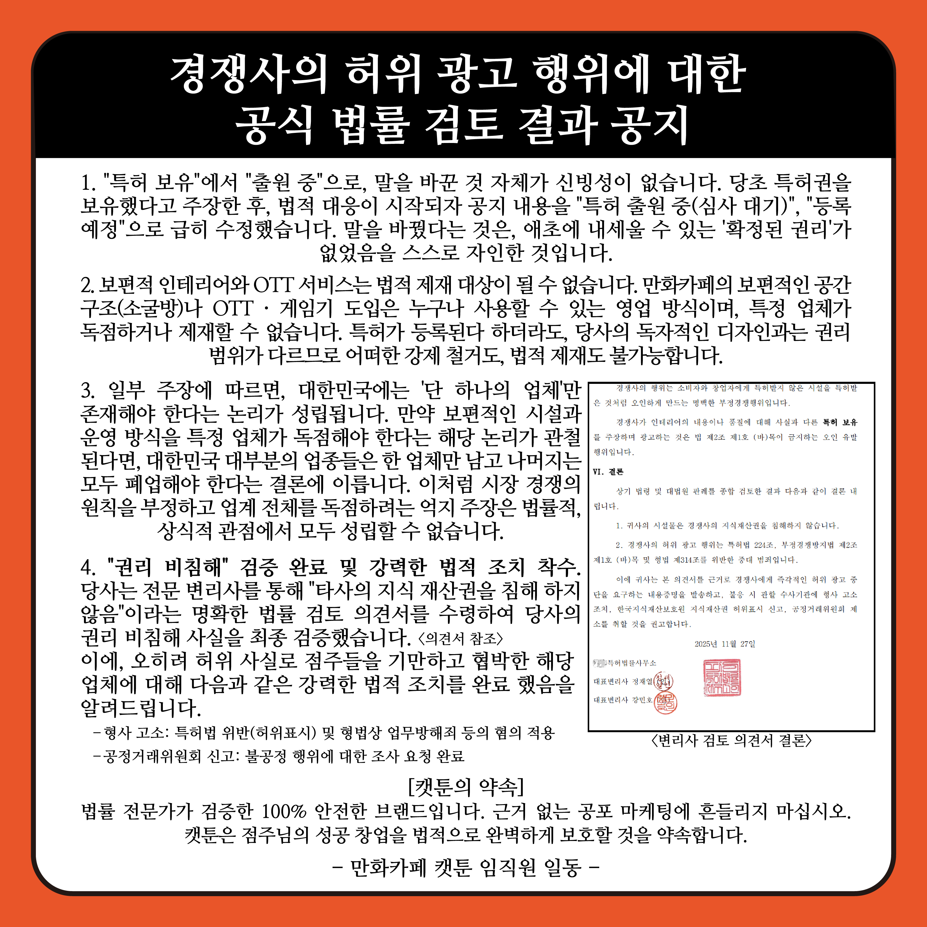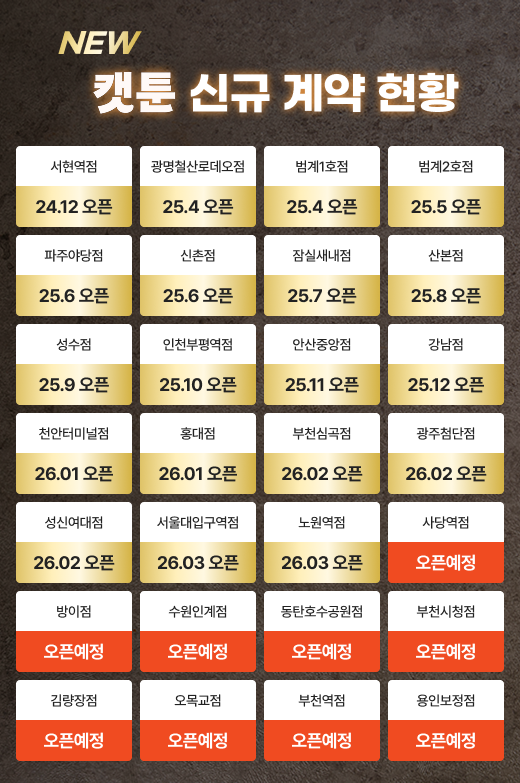 | 로열티를 수취하면서 아무 관리나 지원이 없음 | 캣툰은 안전하게 매장 집중케어 관리 |