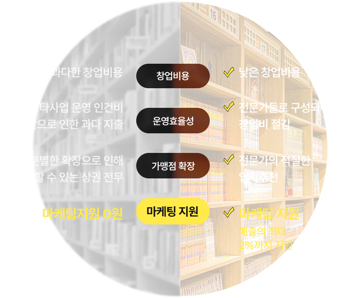 | 과다한 창업비용 | 거품없는 합리적인 창업비용 |